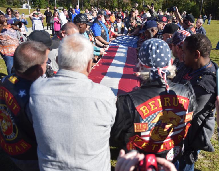 Hundreds gathered on October 22 to participate in the Formation.  It started with the veterans joining together by company.  Family members joined in and it ended with the vets folding the flag that flew over Camp Geiger.