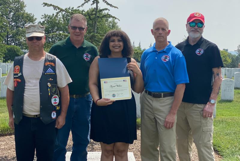 At 1100 hours on July 30, 2021 a small group representing the BVA met with this year's recipient of the BVA Scholarship Kaelah Wallace. This scholarship was made in honor of 1st Lt. John Boyett who died in Beirut on October 23, 1983 (See more details about 1st Lt. Boyett below).