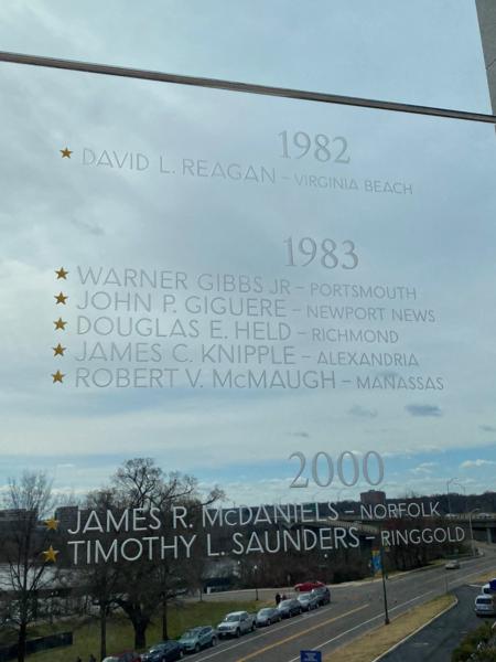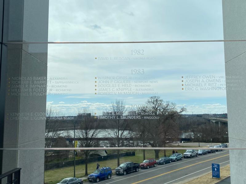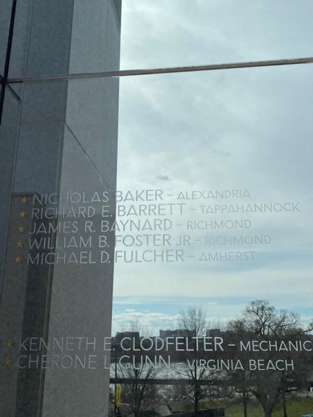 One of our BVA Board Members and Membership Officer Richard Truman attended the Virginia War Memorial Grand Opening of the Shire of Memory - Global War on Terrorism on 29 Feb and was moved by the experience. There is a pane of glass etched with the names of our Virginia Brothers lost in Beirut (see below).