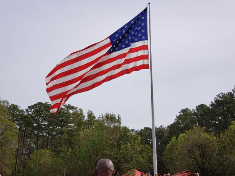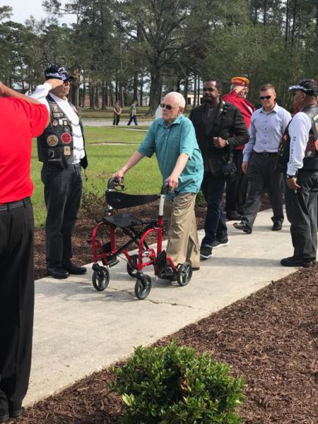 After the remembrance, the veterans and family members walked through the circle under the large waving American flag as the Rolling Thunder saluted them for their service and sacrifice. This small but important ceremony at Camp Geiger, which is still home to 1/8 Battalion, is part of the tradition to remember the peacekeepers who died in Beirut.